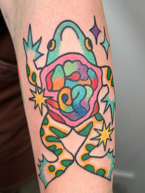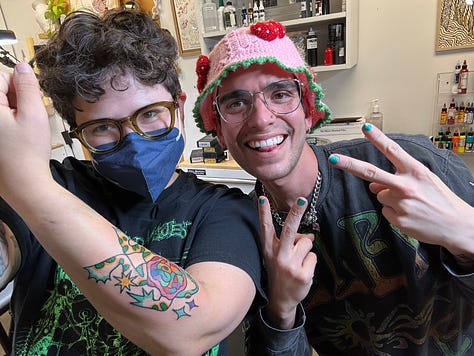 Other stuff: I’m now in TWO three-person book clubs. I got a new tattoo done by Jose/Whotattoo . I just finished both my tiny travel sketchbook and my regular big one, so expect some sketchbook pages soon.