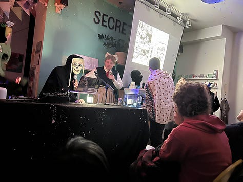 Right after that, I had a couple of local events. I was a moderator for two panels at Texas Book Festival. If you’d told me just a couple of years ago that I’d be brave enough to not only be on a panel but MODERATE, I would have laughed in your face. I’ve always had a big public speaking fear that’s been a whole journey to work on. It’s still scary every time but also feels very cool and important. I’m glad they asked me again this year. I also tabled at Lone Star Zine Fest and dedicated half my table to Inky Eyes (the quarterly comic reading event I host at Alienated Majesty). I had some past readers work on the table, and got some help from my partner Chloe and my friend/new cohost Sammy, both of whom had new comics for the event. Now that I’ve found myself with a little bit of local name recognition, it feels good to use some of that attention to celebrate and showcase other cartoonists in my local community. I’m still new to this more organizer-y side of things but it feels good to do. Hoping to do more in the new year!